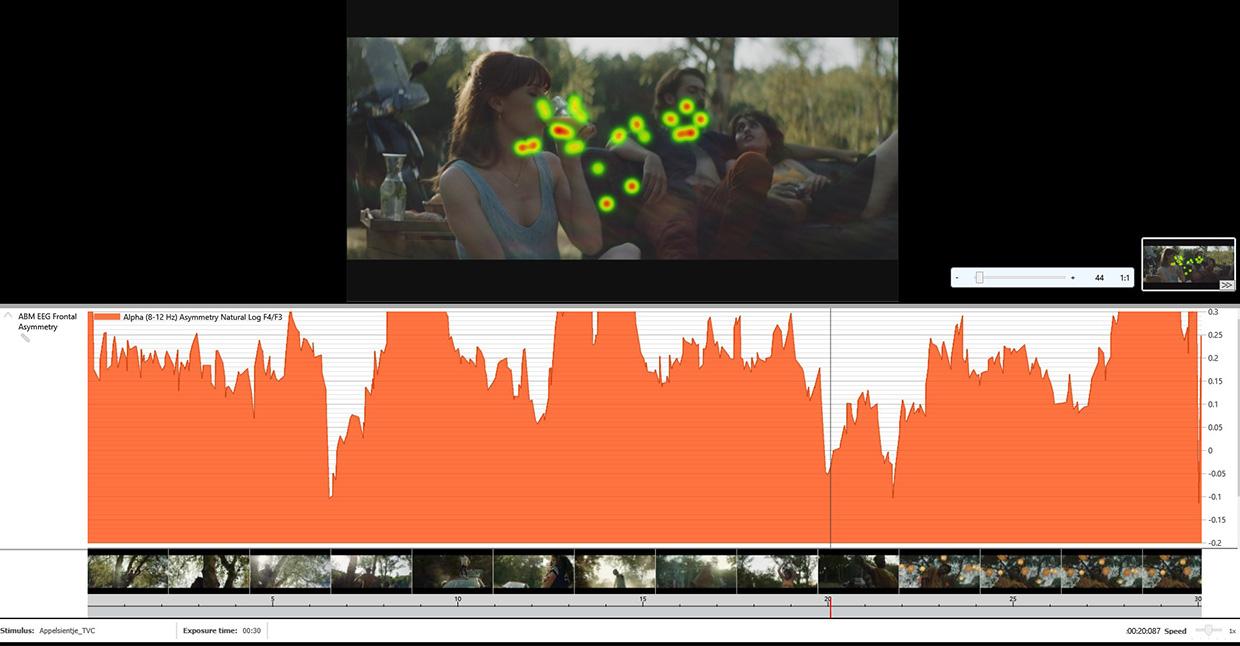 In neuromarketing reclameonderzoek, wordt brein-data meestal gecombineerd met eye tracking data. Op deze manier kan je precies zien waar mensen kijken en hoe het brein hierop reageert.