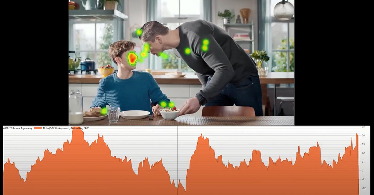 De beleving van de kijker wordt in kaart gebracht dankzij EEG en Eye Tracking. Hierdoor kan de effectiviteit van de reclame bepaald worden. Het voordeel om op deze manier reclame onderzoek te doen is dat Eye Tracking en EEG de beleving van de kijker vele malen per seconde vastleggen. Dit geeft diep inzicht in de sterke en zwakke plekken van een reclame, waardoor doelgerichte optimalisatie mogelijk is.