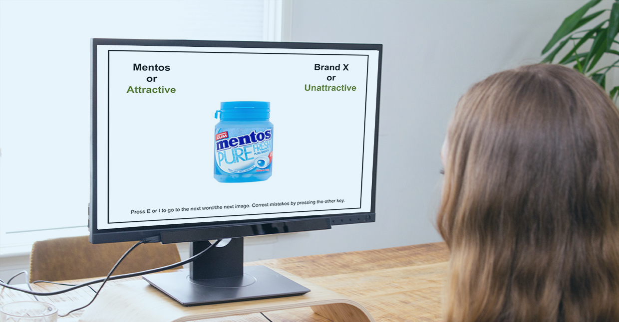 As the brain needs more time to process incongruent presentations, the associative strength between the brand and the word can be calculated as the difference in reaction time between the countered two blocks. When the target brand is identified more quickly when presented with positive words compared to the identification when it presented next to negative words, we conclude that the brand is experienced positively.