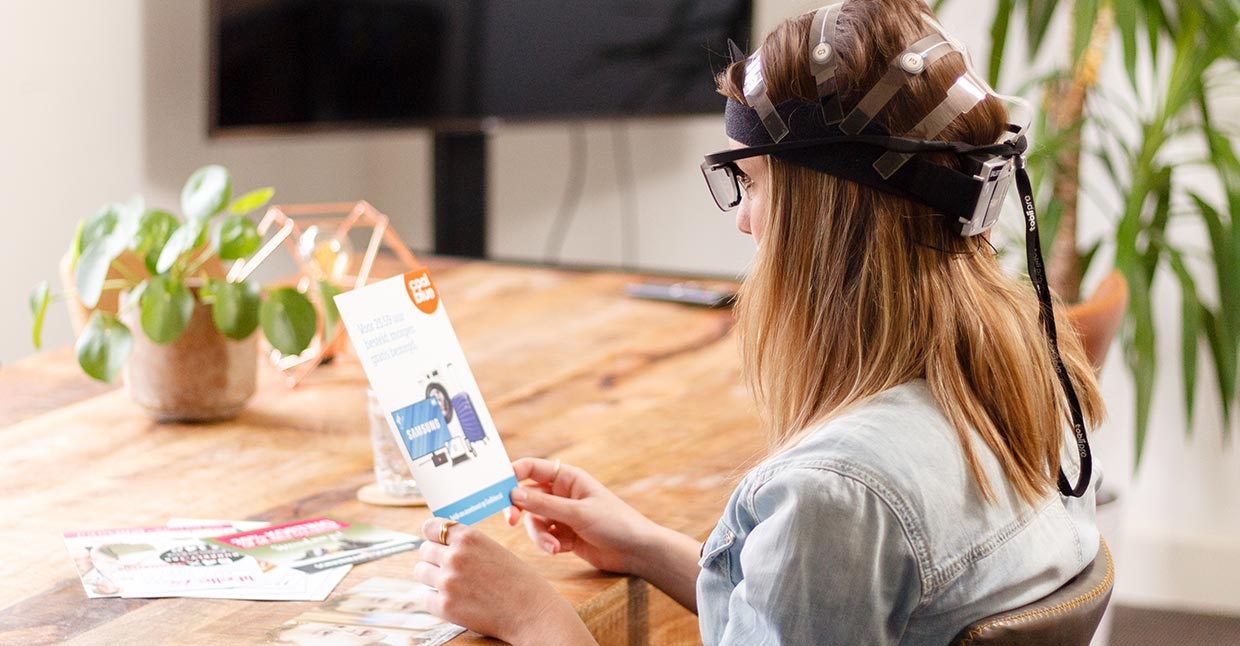 First things first: we start conducting our research by inviting 20 to 30 participants to our lab in Utrecht. The lab resembles a living room to create a relaxed atmosphere for the participants. Each participant gets an assignment. The assignment depends on the type of research that is taking place. One can see a TV program, a product, a couple of TV commercials, or visit an online store. While the assignment takes place, brain activity and viewing patterns are being measured comfortably with EEG and eye tracking. This allows us to see how the brain reacts to the stimuli, very accurately!