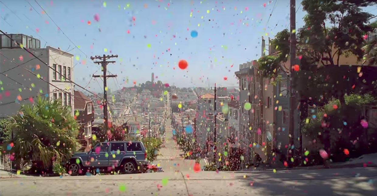 Remember the Sony Bravia commercial in which countless of balls bounce through San Francisco’s deserted streets? (if not, will refresh your mind)