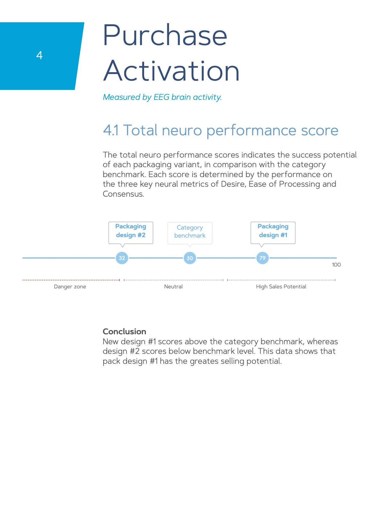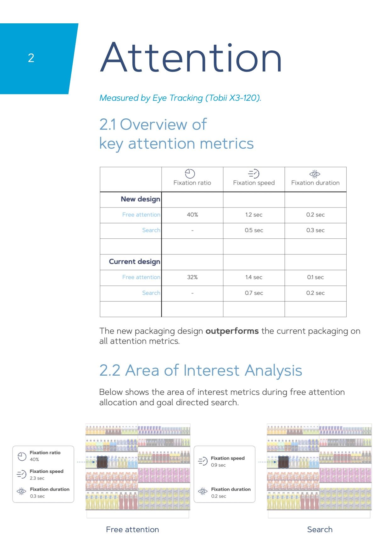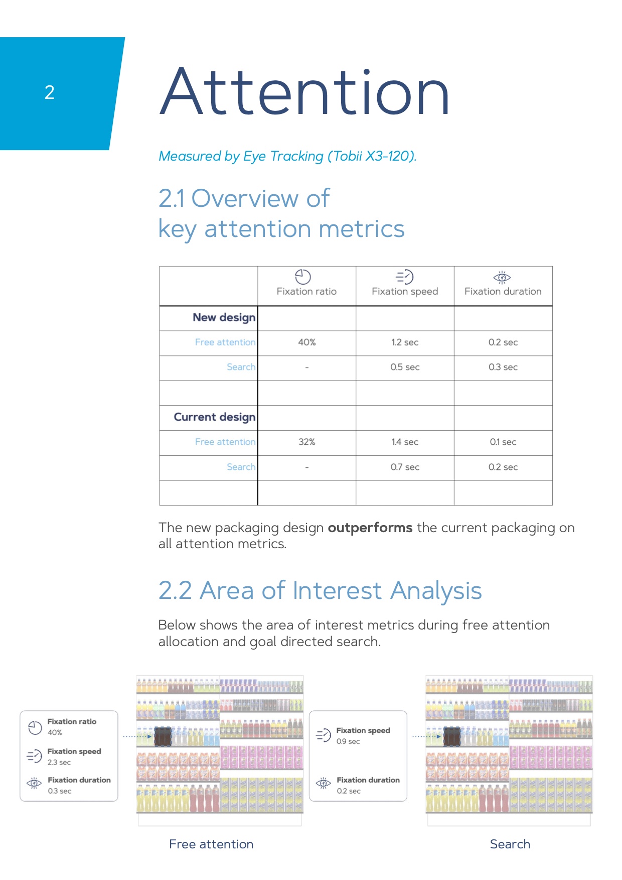 By using eye tracking and EEG research to test different new variants compared against the current packaging, you will get a clear picture of the differences in performance of attention, brand recognition and purchase activation. This way you can ensure to be innovating in the right direction.