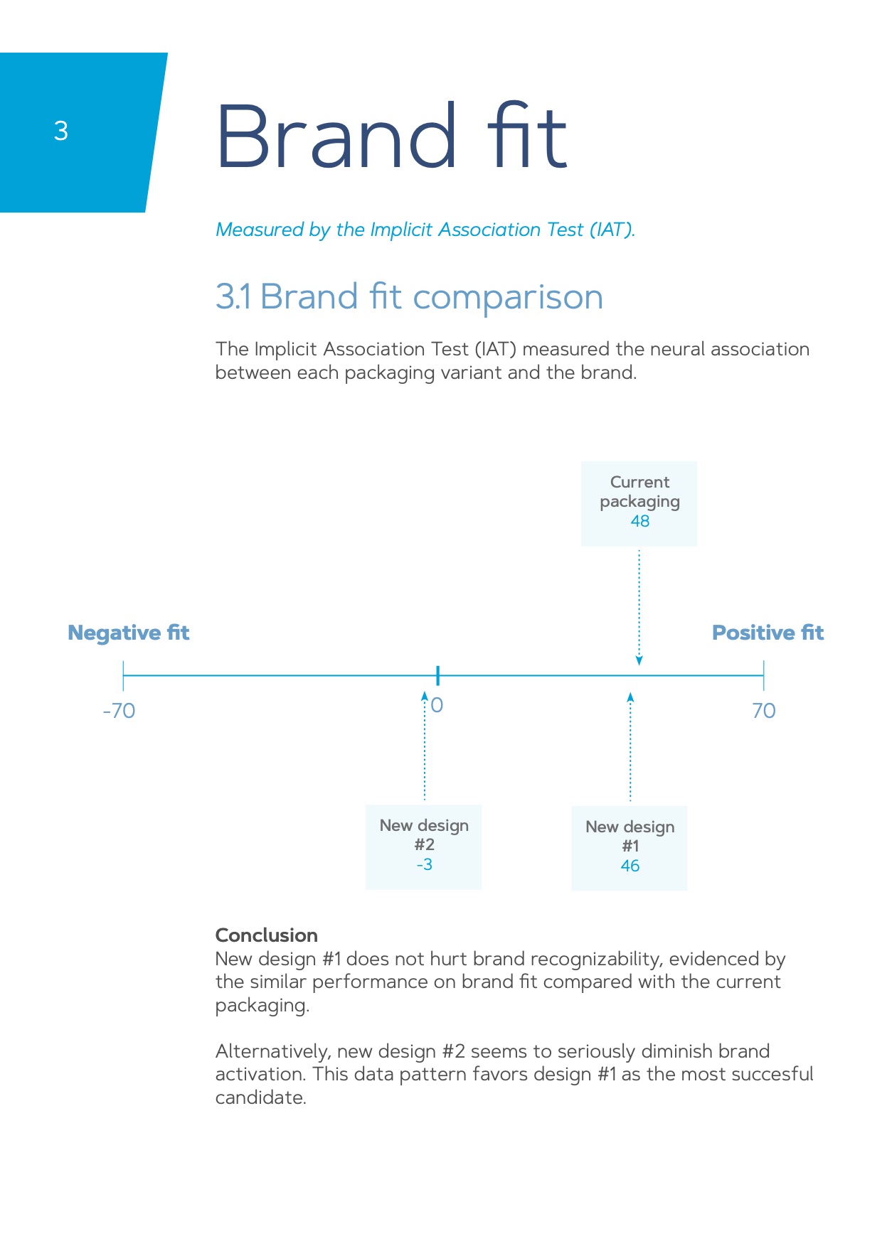 The Implicit Association Test (IAT) is an implicit measurement method developed at Harvard. IAT uses reaction time to reveal the power of unconscious associations in the brain. In packaging research, we use the IAT to quantify the extent to which the packaging automatically activates the brand in the brain.